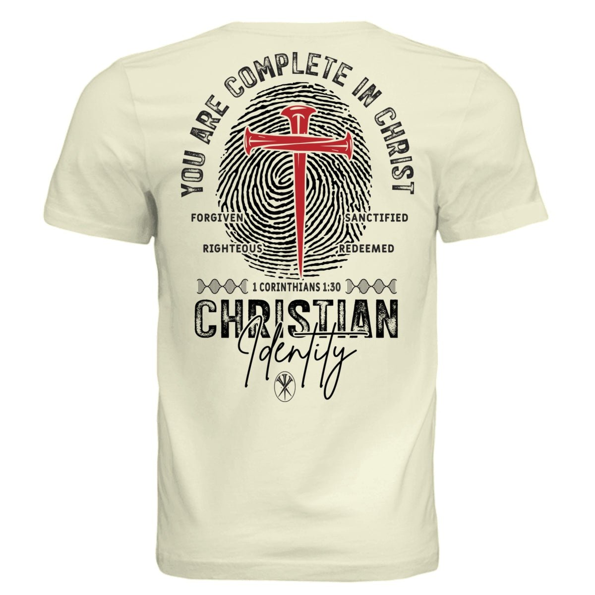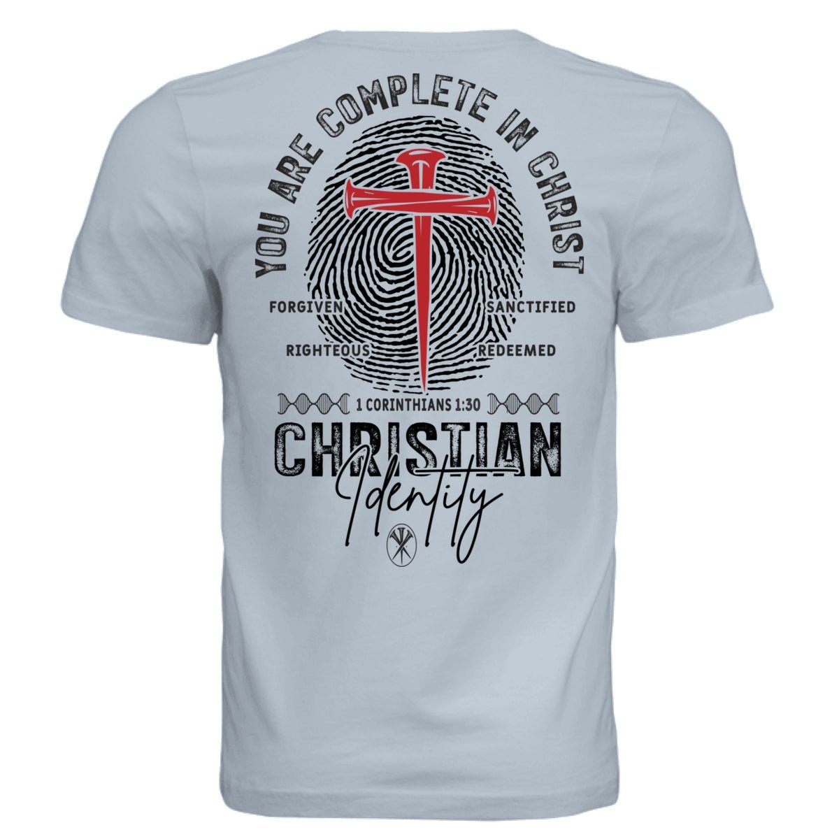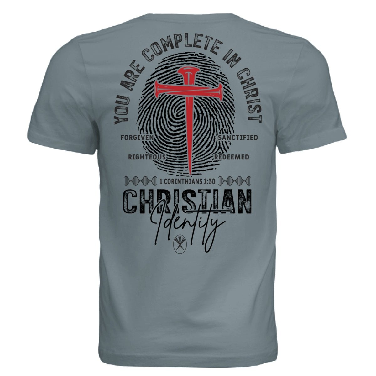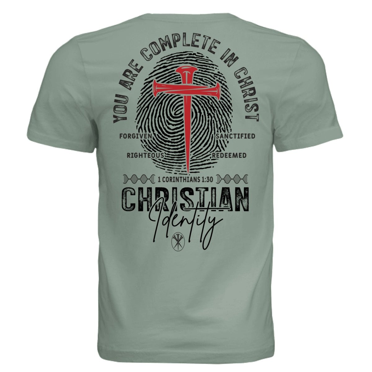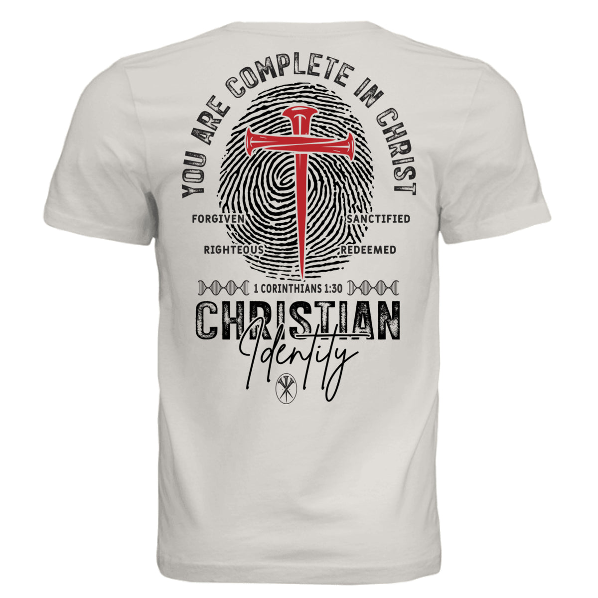 This powerful back-print tee declares your full identity in Jesus — not in the world. With a fingerprint cross and bold truth from 1 Corinthians 1:30, it speaks what God says about you: forgiven, redeemed, righteous, and sanctified.