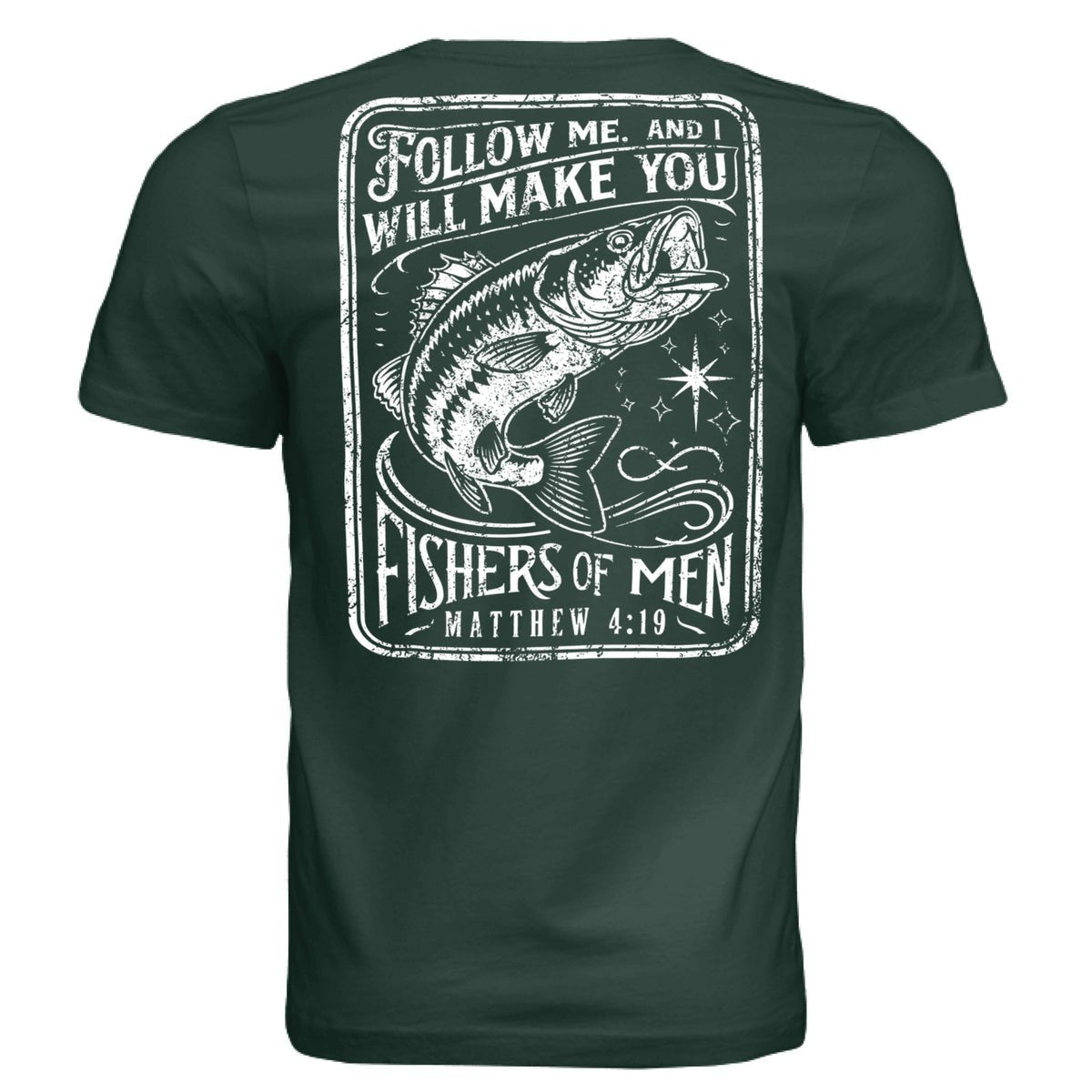This double-sided tee is a bold call to purpose. On the front, a clean fish-and-scripture design sits over the heart — a quiet reminder of Who you follow. On the back, the message comes alive in full: a striking graphic paired with Jesus’ invitation to every believer.