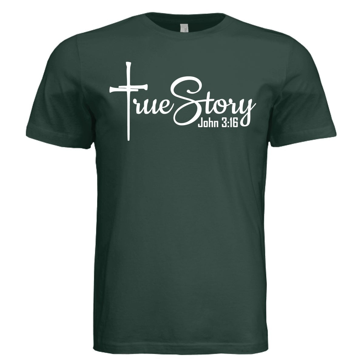This “True Story” tee boldly declares the greatest love ever written. Beneath the words, the reference to John 3:16 points straight to the heart of the Gospel — the story of a Savior who came, died, and rose again.