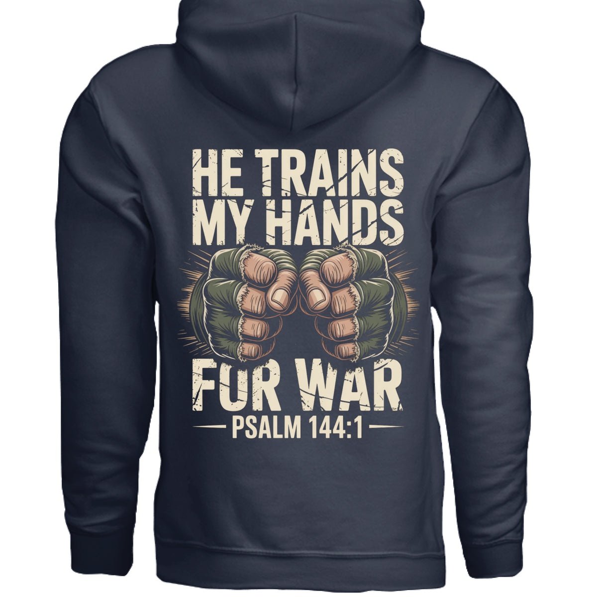 This “He Trains My Hands for War” hoodie declares the truth of Psalm 144:1 (NKJV) — that the strength we walk in comes from the Lord alone. It’s more than apparel; it’s a bold reminder that God equips His people for every fight, every challenge, and every victory.
