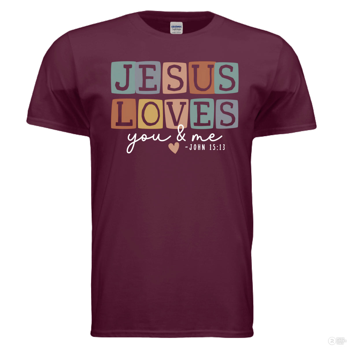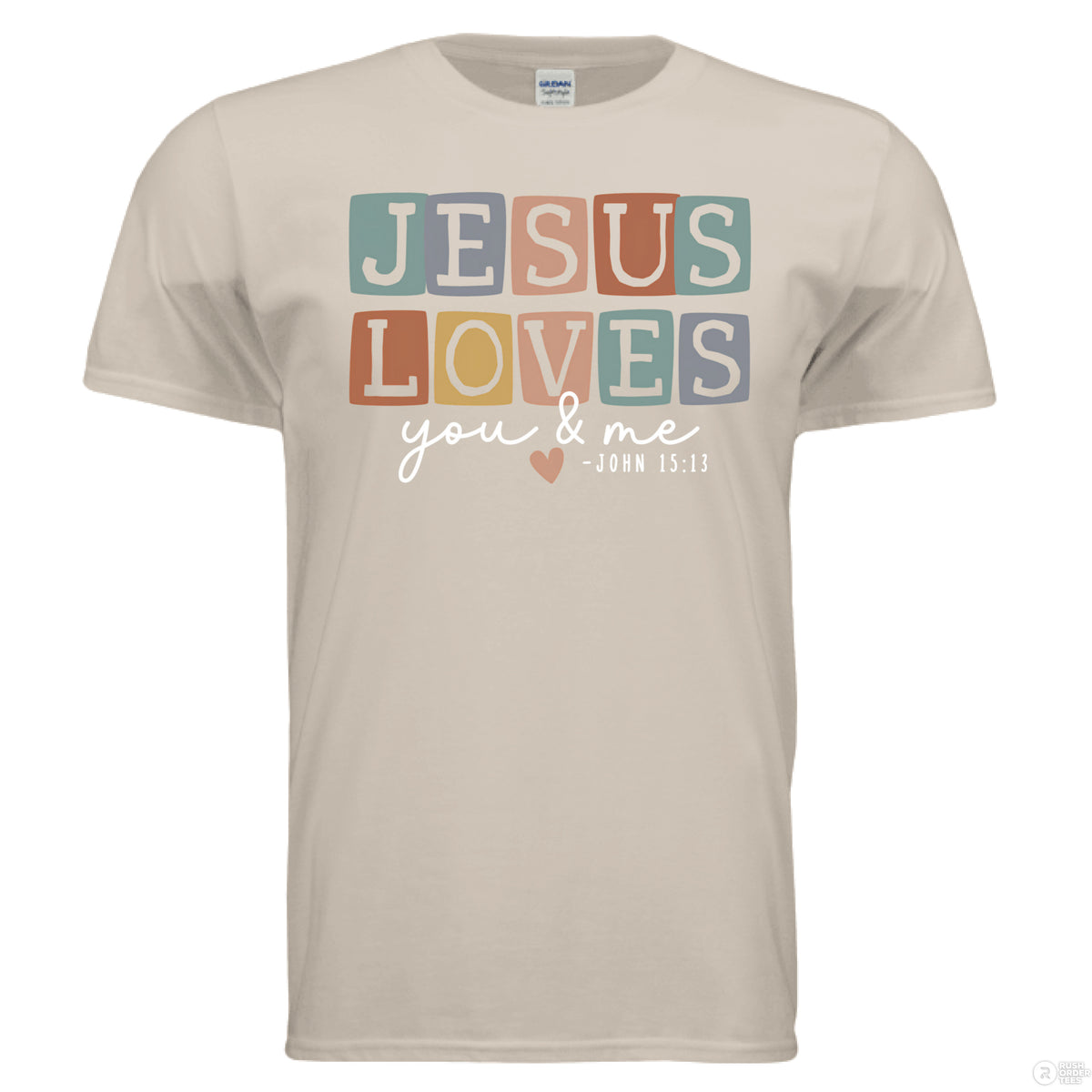 This heartfelt tee declares a timeless truth: “Jesus loves you & me.” Inspired by John 15:13, it reflects the greatest love ever shown—Christ laying down His life for us.